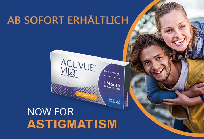 ACUVUE® VITA™ for ASTIGMATISM with HydraMax™ Technologie wurde speziell für die Komfortbedürfnisse von Monatslinsenträgern entwickelt. Bei der HydraMax-Technologie erlaubt ein neues, unbeschichtetes Silikonhydrogel-Material die Integration einer maximalen Menge eines Hydratisierungswirkstoffes (PVP) in die Linse. Dies in Verbindung mit einer optimalen Dichte und Verteilung natürlicher Lipide in der Linse führt zu einem außergewöhnlichen und zuverlässigem Tragekomfort über den gesamten Monat. Die Lidschlag-Stabilisation sorgt für eine klare, stabile Sicht: Die Linse interagiert dabei mit beiden Augenlidern und richtet die Linse schnell aus. Mit UV-Schutz der Klasse 1 bietet ACUVUE® VITA™ for ASTIGMATISM den höchsten UV-Schutz unter den weichen Kontaktlinsen.